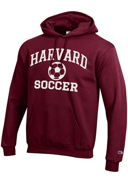 Mens Harvard Crimson Maroon Champion Soccer Powerblend Hooded Sweatshirt