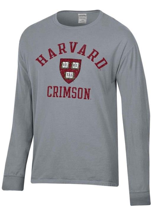 Show your Harvard Crimson spirit in this Harvard Charcoal T Shirt! This Harvard Garment Dyed Long Sleeve T Shirt makes a great layer for cooler nights cheering on the Crimson. Featuring a screen print graphics, this Harvard Crimson Long Sleeve Tee is an essential addition for every fan. Go Crimson!