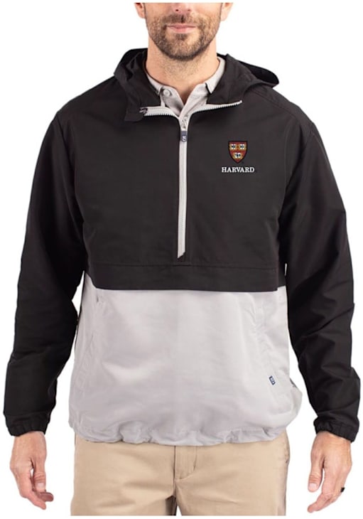 Mens Harvard Crimson Black Cutter and Buck Charter Eco Pullover Jackets