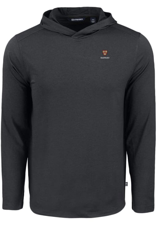 Mens Harvard Crimson Black Cutter and Buck Coastline Eco Hooded Sweatshirt