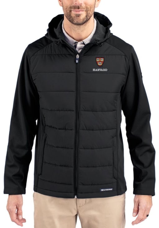 Black Harvard Crimson Cutter and Buck Mens Evoke Hood Big and Tall Lined Jacket