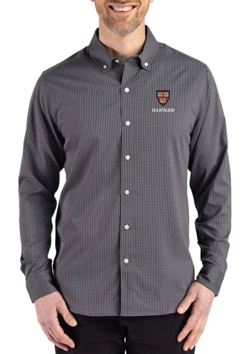 Show your Crimson spirit show in the office with this Harvard Crimson Dress Shirt! Embrace your team spirit and showcase it proudly in this Mens Black Gingham LS Woven Long Sleeve Long Sleeve Button Down Shirt. This Long Sleeve Dress Shirt features a team logo.