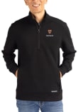 Mens Harvard Crimson Black Cutter and Buck Roam Qtr Zip Pullover