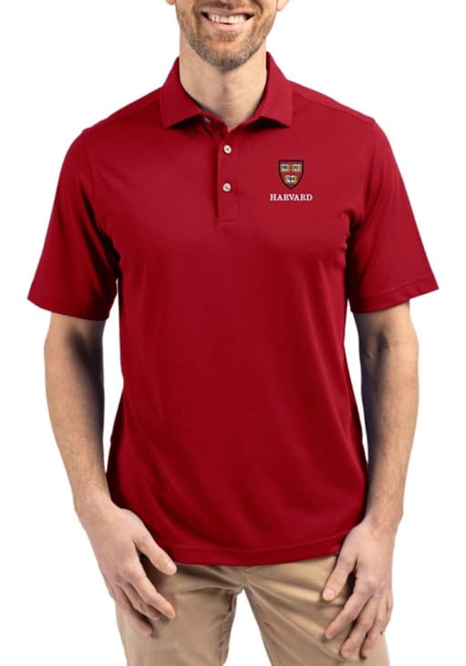 Mens Harvard Crimson Cardinal Cutter and Buck Virtue Eco Pique Short Sleeve Polo Shirt