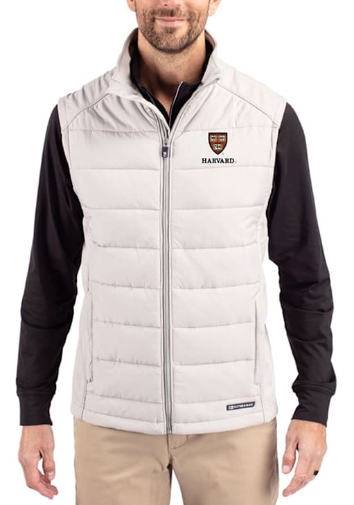 Mens Harvard Crimson Charcoal Cutter and Buck Evoke Vest