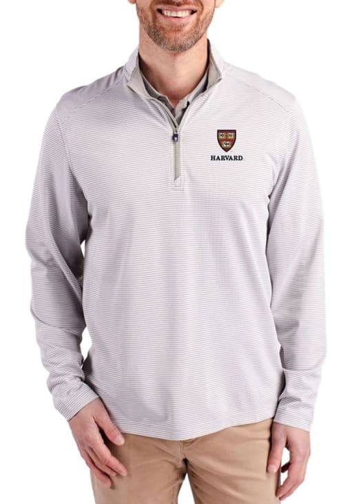 Embrace the warmth and showcase your Crimson pride with our Harvard Crimson Big and Tall Qtr Zip. This Mens Grey Virtue Eco Pique Stripe Big and Tall Pullover offers a moisture wicking material for the perfect combination of comfort and style. Elevate your everyday look with this must-have Harvard Crimson Big and Tall Qtr Zip.