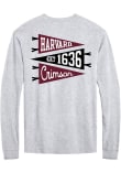 Show your Harvard Crimson spirit in this Harvard Ash T Shirt! This Harvard Pennant Flags Long Sleeve T Shirt makes a great layer for cooler nights cheering on the Crimson. Featuring a screen print team graphic on front and back, this Harvard Crimson Long Sleeve Tee is an essential addition for every fan. Go Crimson!