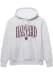Size Chart for Mens Ash Harvard Crimson Arch above primary logo Hooded Sweatshirt
